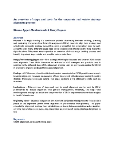 Haynes Overview of steps and tools for the corporate real estate strategy alignment process .pdf - Accepted Version