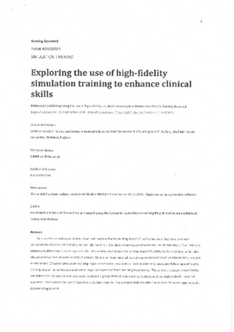KIRKHAM, Lucy (2018). Exploring the use of high-fidelity simulation training to enhance clinical skills. Nursing standard, 32 (24), 44-53. [Article]