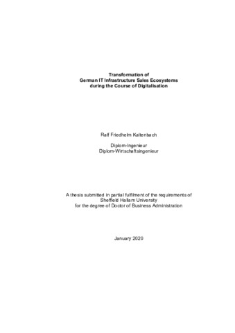 KALTENBACH, Ralf Friedhelm (2020). Transformation of German IT Infrastructure Sales Ecosystems during the Course of Digitalisation. Doctoral, Sheffield Hallam University. [Thesis]