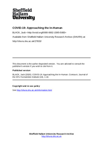 BLACK, Jack (2020). COVID-19: Approaching the In-Human. Contours: Journal of the SFU Humanities Institute, 10 (Fall). [Article]