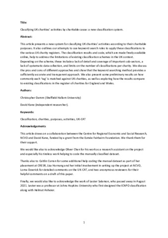 DAMM, Christopher and KANE, David (2022). Classifying UK charities’ activities by charitable cause: a new classification system. Voluntary Sector Review, 1-27. [Article]