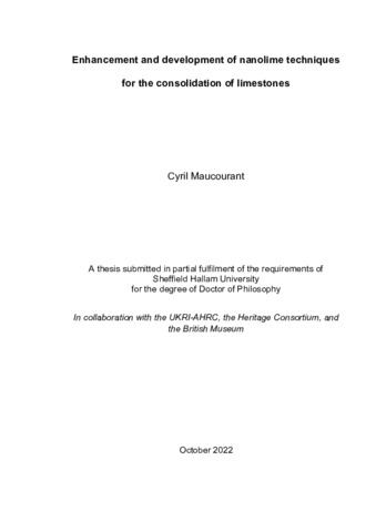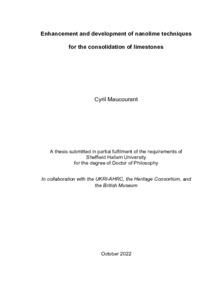 MAUCOURANT, Cyril (2022). Enhancement and development of nanolime techniques for the consolidation of limestones. Doctoral, Sheffield Hallam University. [Thesis]