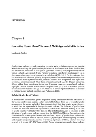 PANDEY, Madhumita (2023). Introduction: Combatting Gender-Based Violence: A Multi-Approach Call to Action. In: PANDEY, Madhumita, (ed.) International Perspectives on Gender-Based Violence. Advances in Preventing and Treating Violence and Aggression (APTVA) . Cham, Springer, 1-11. [Book Section]