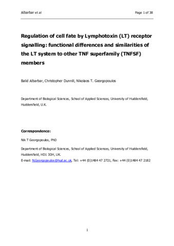 ALBARBAR, Balid, DUNNILL, Christopher and GEORGOPOULOS, Nik (2015). Regulation of cell fate by lymphotoxin (LT) receptor signalling: Functional differences and similarities of the LT system to other TNF superfamily (TNFSF) members. Cytokine & growth factor reviews, 26 (6), 659-671. [Article]
