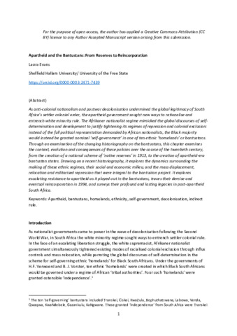 L. Evans, Apartheid and the bantustans, Ox Handbook of South African History, 2025.pdf - Accepted Version