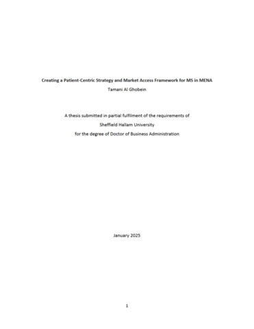 AL GHOBEIN, Tamani (2025). Creating a Patient-Centric Strategy and Market Access Framework for MS in MENA. Doctoral, Sheffield Hallam University. [Thesis]