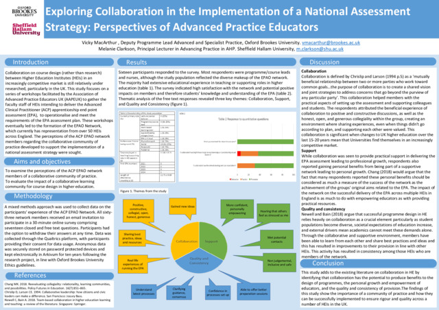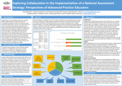CLARKSON, Melanie and MACARTHUR, Vicky (2023). Exploring Collaboration in the Implementation of a National Assessment Strategy: Perspectives of Advanced Practice Educators. In: AAPE UK, Online, 12 Jun 2023. AAPE UK. (Unpublished) [Conference or Workshop Item]
