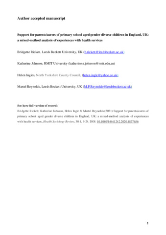 Rickett et al 2020 - AA version - Support for parents carers of primary school aged gender diverse children .pdf - Accepted Version