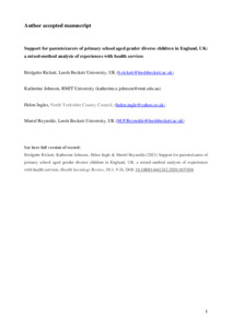Support for parents/carers of primary school aged gender diverse children in England, UK: a mixed-method analysis of experiences with health services
