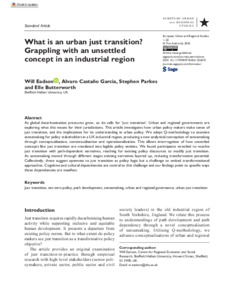 EADSON, William, CASTAÑO GARCIA, Alvaro, PARKES, Stephen and BUTTERWORTH, Elle (2025). What is an urban just transition? Grappling with an unsettled concept in an industrial region. European Urban and Regional Studies. [Article]