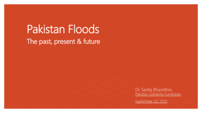 BHANBHRO, Sadiq (2022). Health risks of flooding in Pakistan. In: Pakistan Solidarity Fundraiser Event, Online. ONCA Art Gallery and Charity Brighton. (Unpublished) [Conference or Workshop Item]