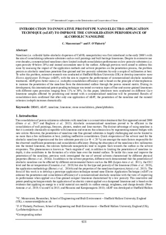 MAUCOURANT, Cyril and O'FLAHERTY, Fin (2026). Introduction to innovative nano Electro Application Technique (nEAT) to improve the performance of alcoholic nanolime. In: Stone 2025: proceedings of the 15th international congress on the deterioration and conservation of stone. ICOMOS, 928-934. [Book Section]