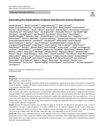 MURPHY, Jennifer, KIRK, Christopher, EDWARDS, Tobias and WARNE, Joe (2025). Estimating the Replicability of Sports and Exercise Science Research. Sports Medicine, 55, 2659-2679. [Article]