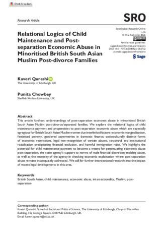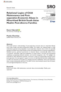 QURESHI, Kaveri and CHOWBEY, Punita (2025). Relational logics of child maintenance and post-separation economic abuse in minoritized British South Asian Muslim post-divorce families. Sociological Research Online. [Article]