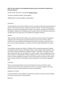 SNAITH, Bev, HARCUS, James, HIZZETT, Kayleigh and CLARKSON, Melanie (2025). Mind The Gap: Scoping the UK Radiography Workforce Needs and Available Post-Registration Education Provision [abstract only]. Radiography, 31: 103063. [Article]
