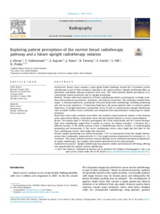 ULMAN, J., UNDERWOOD, T., INGRAM, S., NUNN, J., TIERNEY, R., SMITH, S., HILL, S. and PROBST, Heidi (2025). Exploring patient perceptions of the current breast radiotherapy pathway and a future upright radiotherapy solution. Radiography, 31 (6), p. 103157. [Article]