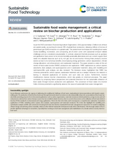 SUDARSAN, J. S., GOEL, Mukesh, JAHANGIRI, Hessam, ROUT, P. R., TAVAKOLIAN, M., BRIGGS, C., HAYNES-PARRY, Macsen, ASTHANA, Abhishek, LAKSHMIPATHY, R., PRABHU, S. V. and NITHIYANANTHAM, S. (2025). Sustainable food waste management: a critical review on biochar production and applications. Sustainable Food Technology. [Article]
