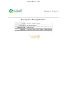 BENNETT, Luke (2025). Thinking about “thinking like a brick”. Qualitative Research Journal, 1-12. [Article]