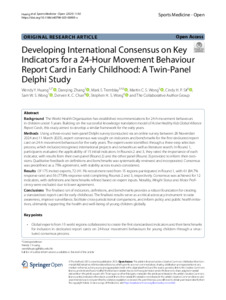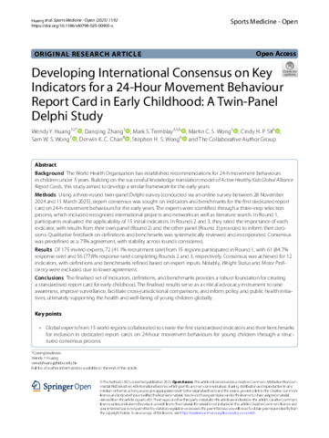 HUANG, Wendy Y, ZHANG, Danqing, TREMBLAY, Mark S, WONG, Martin CS, SIT, Cindy HP, WONG, Sam WS, CHAN, Derwin KC and WONG, Stephen HS (2025). Developing International Consensus on Key Indicators for a 24-Hour Movement Behaviour Report Card in Early Childhood: A Twin-Panel Delphi Study. Sports Medicine - Open, 11 (1). [Article]