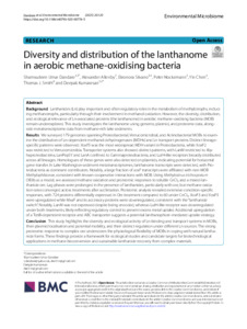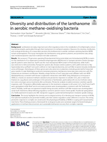 DANDARE, Shamsudeen Umar, ALLENBY, Alexander, SILVANO, Eleonora, NOCKEMANN, Peter, CHEN, Yin, SMITH, Thomas and KUMARESAN, Deepak (2025). Diversity and distribution of the lanthanome in aerobic methane-oxidising bacteria. Environmental Microbiome, 20 (1): 120. [Article]