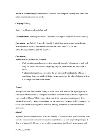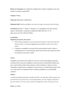 SMITH, Joanna and OSHEA, Bee (2025). Reducing smartphone screen time can improve sleep and overall well-being. Evidence-based nursing. [Article]