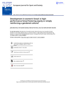 BARREIRA, Júlia, SANTOS, Fernando, FERREIRA, Marta, CARVALHO, Ana and DAVIDS, Keith (2025). Development in women’s futsal: is high-performance futsal fostering equity or simply reinforcing a gendered culture? European Journal for Sport and Society, 1-22. [Article]