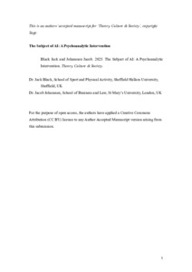 BLACK, Jack and JOHANSSEN, Jacob (2025). The Subject of AI: A Psychoanalytic Intervention. Theory, Culture & Society. [Article]