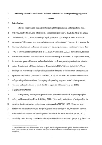 NEWMAN, James and RUMBOLD, James (2026). “Turning around an oil tanker”: Recommendations for a safeguarding program in football. Psychology of Sport and Exercise, 82: 103004. [Article]