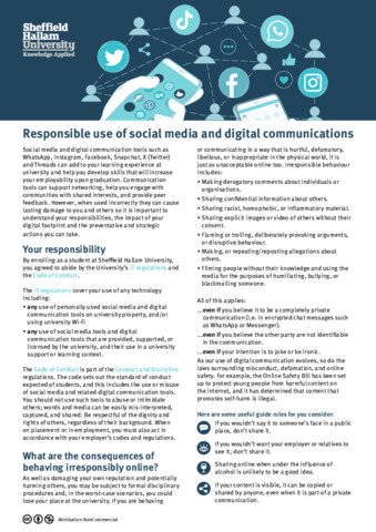 PURVIS, Alison and BECKINGHAM, Sue (2023). Responsible use of social media. Sheffield Hallam University. [Other]