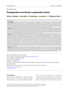 MOULDER, Zachary J., MANN, Jason, BRAMLEY, Paul, HEINZ, Jana and WILES, Matthew D. (2025). Postoperative sore throat: a systematic review*. Anaesthesia. [Article]