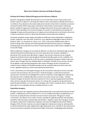JACKSON, Debra, WATSON, Adrianna, BOND, Carmel and CLEARY, Michelle (2026). When Care Colludes: Nursing and Medical Misogyny. Nursing Inquiry, 33 (1). [Article]