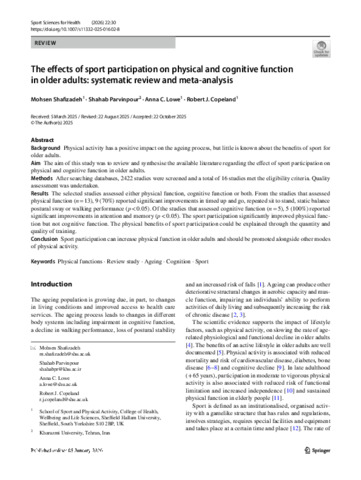 SHAFIZADEH, Mohsen, PARVINPOUR, Shahab, LOWE, Anna and COPELAND, Robert (2026). The effects of sport participation on physical and cognitive function in older adults: systematic review and meta-analysis. Sport Sciences for Health, 22: 30. [Article]