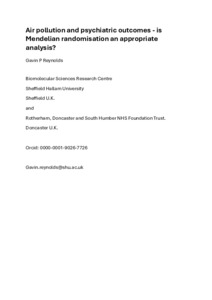 REYNOLDS, Gavin (2025). Air pollution and psychiatric outcomes - is Mendelian randomisation an appropriate analysis? [Correspondence]. Journal of affective disorders, 391: 120061. [Article]