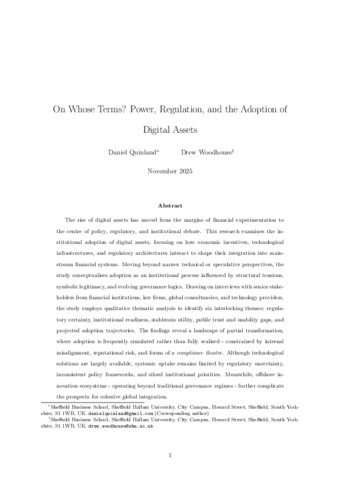 QUINLAND, Daniel and WOODHOUSE, Drew (2025). On Whose Terms? Power, Regulation, and the Adoption of Digital Assets. [Pre-print] (Unpublished) [Pre-print]