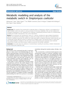 Metabolic modeling and analysis of the metabolic switch in Streptomyces coelicolor.pdf - Published Version