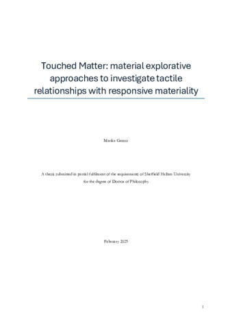 GRASSO, Marika (2025). Touched Matter: material explorative approaches to investigate tactile relationships with responsive materiality. Doctoral, Sheffield Hallam University. [Thesis]