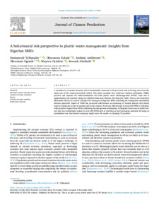 TYLLIANAKIS, Emmanouil, KOLADE, Seun, AMBITUUNI, Ambisisi, OGUNDE, Olawunmi, OYINLOLA, Muyiwa and ABOLFATHI, Soroush (2025). A behavioural risk perspective to plastic waste management: insights from Nigerian SMEs. Journal of Cleaner Production, 534: 147086. [Article]