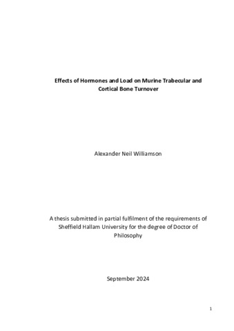 WILLIAMSON, Alexander Neil (2024). Effects of Hormones and Load on Murine Trabecular and Cortical Bone Turnover. Doctoral, Sheffield Hallam University. [Thesis]
