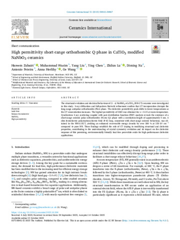 ZUBAIRI, Hareem, WASIM, Muhammad, LIU, Yang, CHEN, Ying, LU, Zhilun, XU, Diming, FETEIRA, Antonio, HERLIHY, Anna and WANG, Ge (2025). High permittivity short-range orthorhombic Q phase in CaTiO3 modified NaNbO3 ceramics. Ceramics International, 51 (28), 59862-59867. [Article]