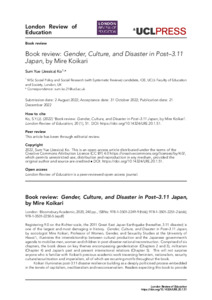 KO, Jessica (2022). Book review: Gender, Culture, and Disaster in Post–3.11 Japan, by Mire Koikari. London Review of Education, 20 (1). [Article]
