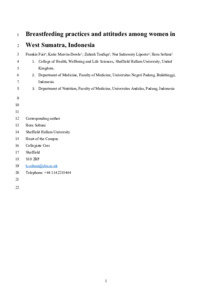 FAIR, Frankie, MARVIN-DOWLE, Katie, TAUFIQA, Zuhrah, LIPOETO, Nur Indrawaty and SOLTANI, Hora (2025). Breastfeeding practices and attitudes among women in West Sumatra, Indonesia. Nutrition and Health. [Article]