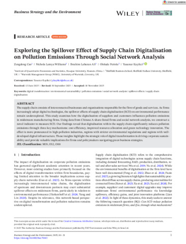 CAO, Zengdong, WILLIAMS, Nichola, ALI, Ibrahim Labaran, OLOLADE, Periola and KAYIKCI, Yasanur (2025). Exploring the Spillover Effect of Supply Chain Digitalisation on Pollution Emissions through Social Network Analysis. Business Strategy and the Environment. [Article]