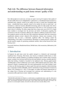 GU, Yiquan, LORD, Alexander, DUNNING, Richard, WILSON, Ian and MOORE, Thomas (2025). Park life: the difference between having financial information and understanding it on park home owners’ quality of life. Town Planning Review. [Article]