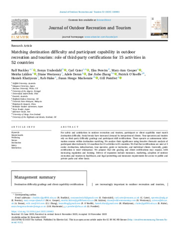 Matching destination difficulty and participant capability in outdoor recreation and tourism - role of third-party certifications for 15 activities in 52 countries.pdf - Published Version
