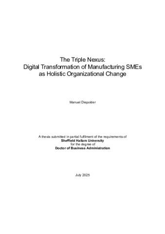 DIEPOLDER, Manuel (2025). The Triple Nexus: Digital Transformation of Manufacturing SMEs as Holistic Organizational Change. Doctoral, Sheffield Hallam University. [Thesis]