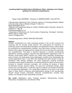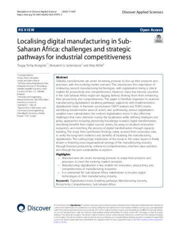 MEZGEBE, Tsegay Tesfay, GEBRESLASSIE, Mulualem Gebregiorgis and MITTAL, Vikas (2025). Localising digital manufacturing in Sub-Saharan Africa: challenges and strategic pathways for industrial competitiveness. Discover Applied Sciences, 7 (12): 1429. [Article]