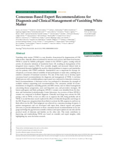 Consensus-Based Expert Recommendations for Diagnosis and Clinical Management of Vanishing White Matter.