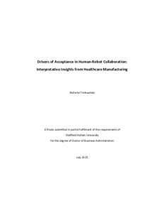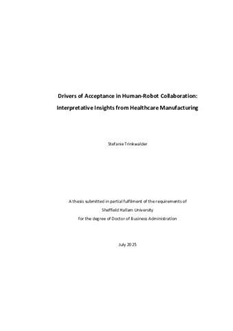 TRINKWALDER, Stefanie (2025). Drivers of Acceptance in Human-Robot Collaboration: Interpretative Insights from Healthcare Manufacturing. Doctoral, Sheffield Hallam University. [Thesis]