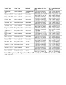 WW seems to have a comparable association with a lower risk of depression when compared to RPA. However, there is limited information regarding its impact on other mental health conditions. To gain a deeper understanding of this association, future research, particularly longitudinal studies and trials, is essential.More Information