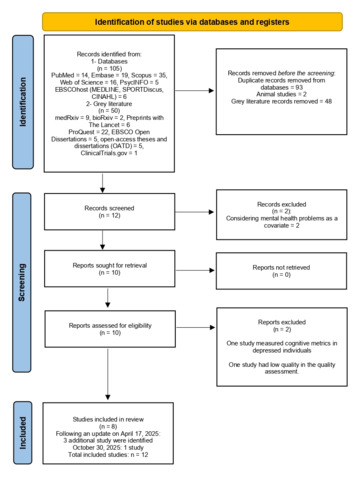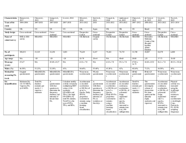 A systematic search was conducted on October 30, 2025, for studies on WW PA and mental health conditions. Study quality was assessed using the Newcastle-Ottawa Scale (NOS). Narrative synthesis was employed for data synthesis.Results